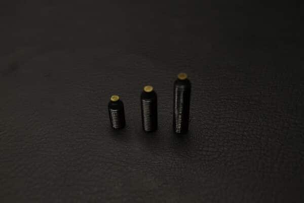 Nylon-tipped screws can work temporarily, but nylon compresses and wears over time. A brass tip maintains a consistent contact point: