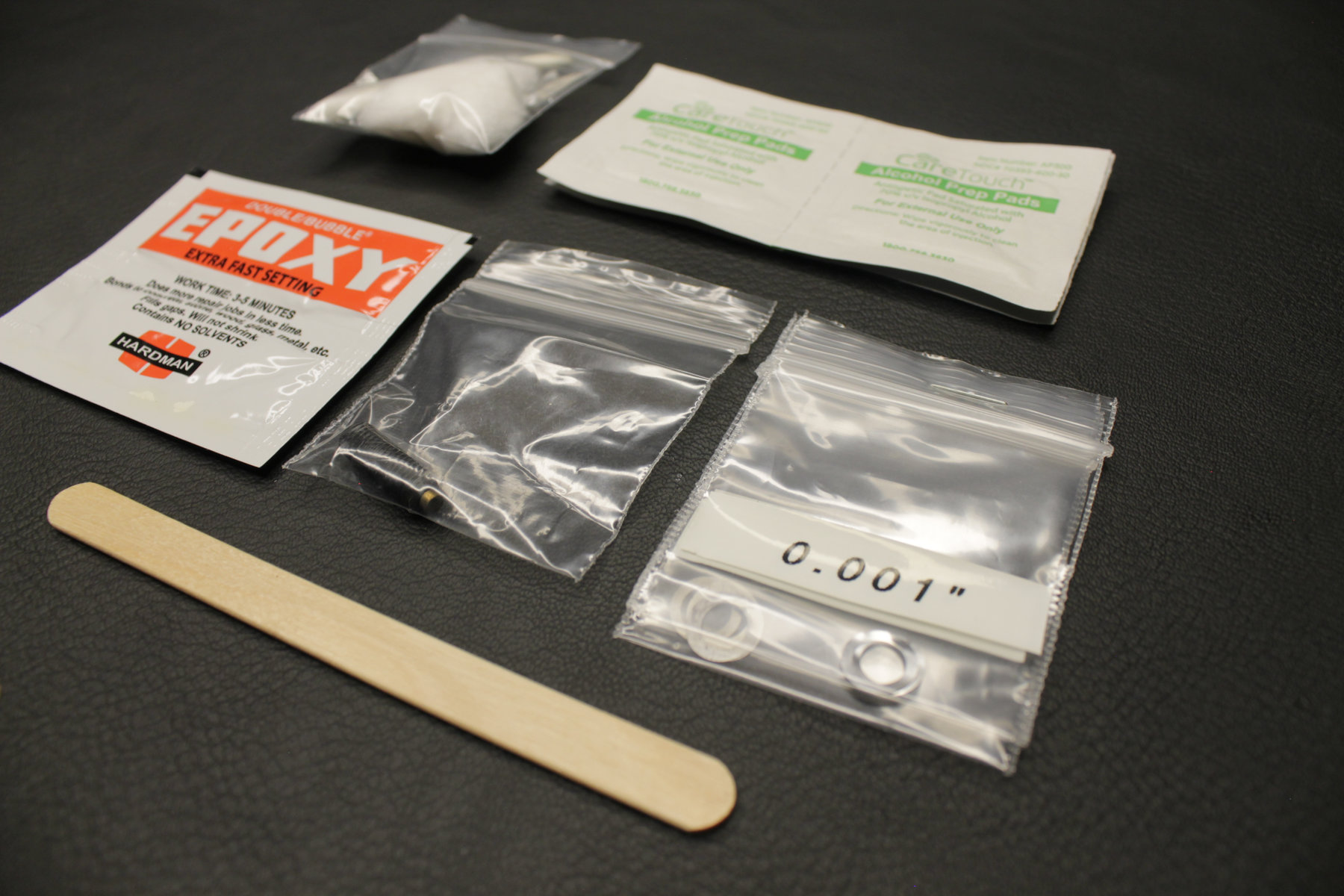 Installation Note: This is a non-permanent modification. The shims are bonded with a mild epoxy that is strong enough for normal use but can be removed if desired. With careful disassembly and cleaning of your components, the shims can often be preserved through multiple maintenance cycles.